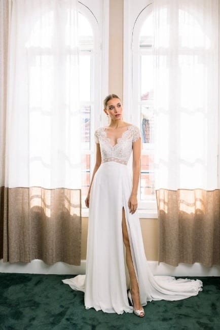 D’origine ukrainienne et installée à Biarritz, sur la côte basque depuis 2013, Olga Boychuk a tenu à rendre ses créations de tenues de mariée au chic et au classicisme sobre accessibles en semi-mesure.