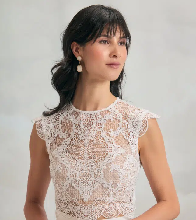 Romantiques et raffinés, les tops en dentelle Catherine Deane apportent douceur et élégance à votre tenue de mariage civil ou de cérémonie, pour un look à la fois moderne et intemporel