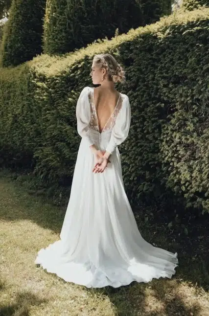 Idéale pour une mariée moderne et rêveuse, la robe Juliette séduit par son allure bohème et intemporelle, parfaite pour un mariage champêtre, civil ou en plein air.