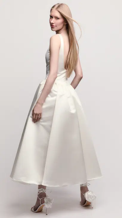 La robe Annie par Watters est une ode à la mariée moderne qui aime les lignes nettes, l’élégance discrète et le style effortless. Avec sa longueur midi ultra chic, elle est parfaite pour un mariage civil, une cérémonie intimiste ou une réception contemporaine.
