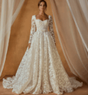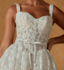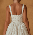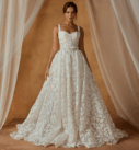 Avec sa jupe ample et romantique et sa texture florale raffinée, la Noble allie féminité, confort et sophistication. Idéale pour un mariage à Bruxelles, elle permet de passer d’un look cérémonie chic à une allure plus bohème ou sophistiquée en soirée, sans changer de robe.