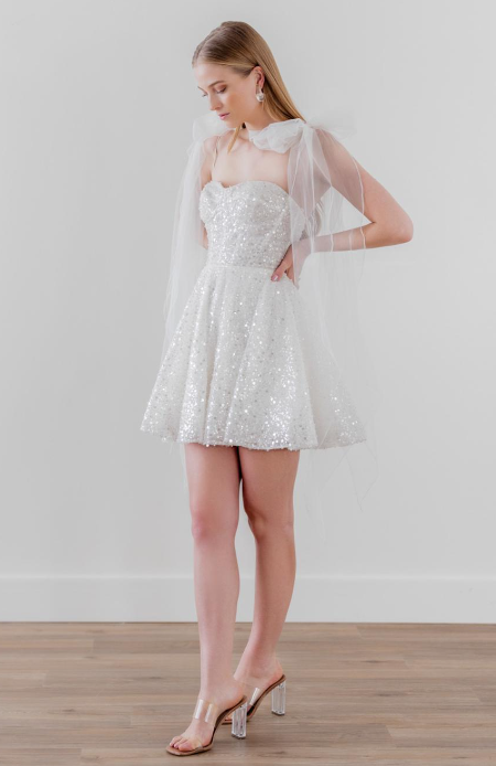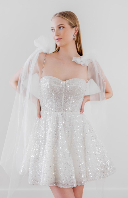 La robe courte Palmier est l’incarnation parfaite du chic moderne et de la sophistication. Avec ses strass étincelants, elle capte la lumière à chaque mouvement, offrant un éclat irrésistible. Que vous soyez en quête d’une tenue pour le dîner de bienvenue, la soirée du mariage ou pour une cérémonie de mariage haute en paillettes, cette robe est idéale pour marquer les esprits.