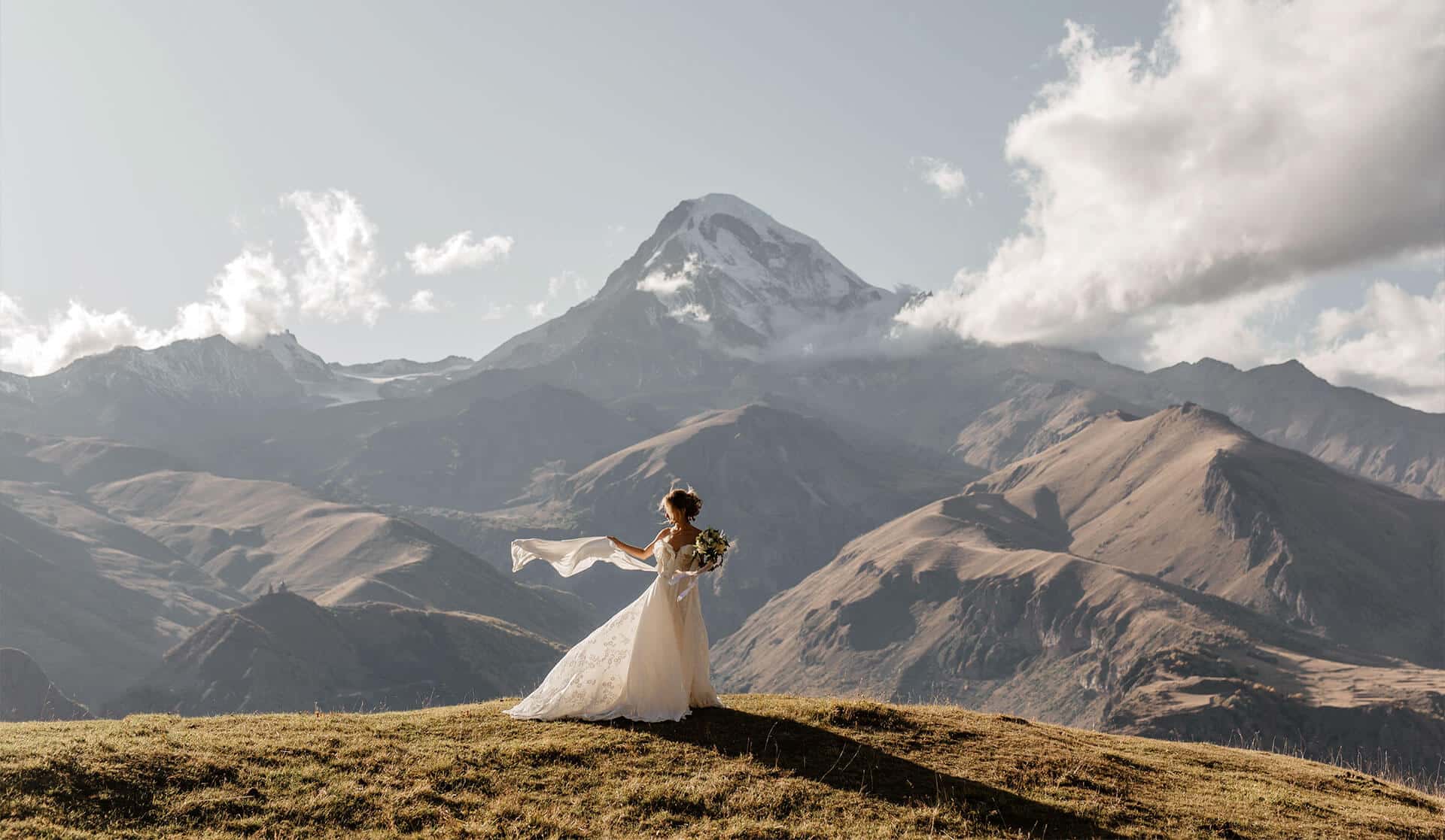 – Always put on your wedding dress from the top (arms outstretched): in order to respect the fall of the pattern and not to damage it by putting it on from the bottom while walking on it with your shoes.